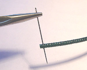 | Using a sewing needle and pliers, push the needle through the end of the fuse to make a small hole. |