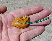 | Before the little blob cools, insert a small piece of Visco Safety Fuse. |