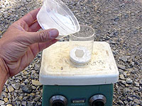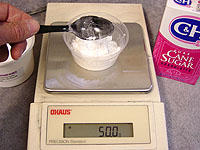 | Start by making a small batch (50 grams total). Measure out 30 grams of potassium nitrate and 20 grams of sugar into a small cup. For those of you who cut math class, 30 grams of potassium nitrate and 20 grams of sugar is still a 60/40 mixture. If you make a batch larger than 50 grams, it will be very difficult to mix and heat evenly. You can always make more, so don't mix up a giant batch. |