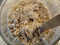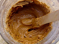 Although the two ingredients can just be finely powdered and mixed together, in recent side-by-side tests, we found that melting the two together does, in fact, make a superior Smoke Bomb. To melt the mixture together, you'll need small metal saucepan (or other heat resistant container) and an electric hot plate. An electric hot plate is preferred to an open flame heat source because it's a tad safer, and easier to prevent overheating of the mixture. The mixture must be heated SLOWLY, and over a LOW heat until it just starts to melt. Heating it too quickly, or at too high a temperature will cause it to turn black, burn and ignite, creating a giant mess AND a fire hazard. In any case, this should all be done outside, just in case you overheat it and it does happen to ignite. As the mixture begins to melt, it will turn brown and look very similar to caramel candy or peanut butter (see image above). After all, you are melting sugar (and no, you can't eat it). | ||||||||||||